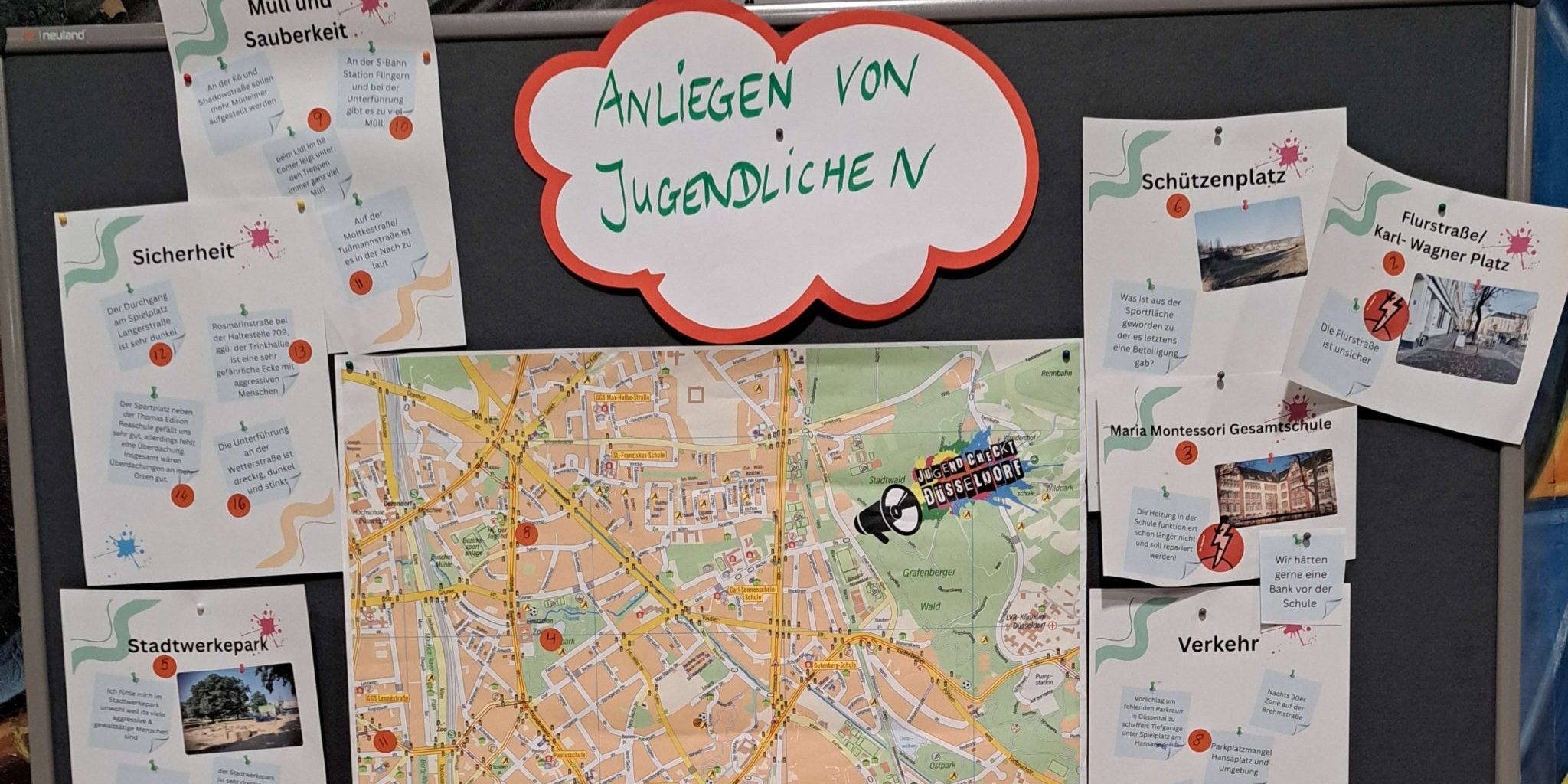 Jugendliche, mit denen wir im Sommer bei Aktionen in den Stadtteilen gesprochen haben, brachten ebenfalls Themen ein. Sie wünschten sich mehr Möglichkeiten zum Fußballspielen sowie Wasserspender. Ein anderes großes Thema war Sicherheit, gerade am Worringer Platz rund um den Bahnhof.