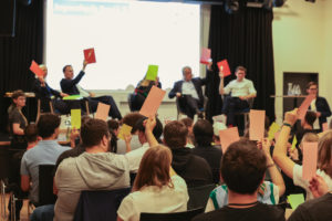 Die Kandidierenden Clara Gerlach (Grüne), Fabian Zachel (SPD), Julia Marmulla (Linke), Stephan Keller (CDU) und Ulf Montanus (FDP) stellten sich den Fragen der Jugendlichen und diskutierten über die Themen, die ihnen wichtig sind. Interaktive Formate und spielerische Elemente sorgten dafür, dass die Kandidat*innen sich auf eine etwas andere Art und Weise präsentieren konnten als bei einer klassischen Podiumsdiskussion. In den anschließenden Diskussionsrunden hatten die jungen Menschen die Chance persönlich mit den Politiker*innen zu sprechen.