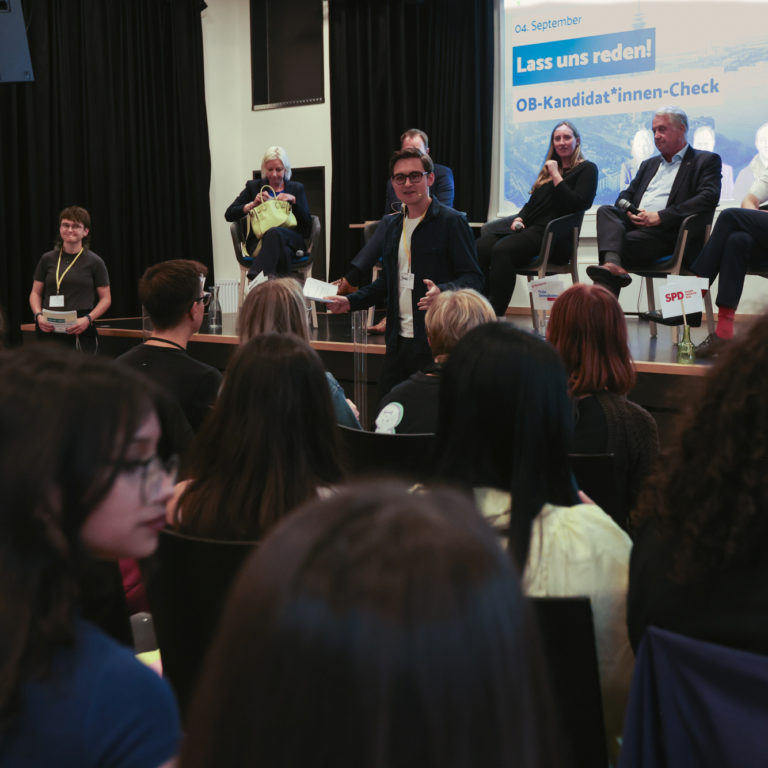 PRESSEMITTEILUNG Düsseldorf, 5. September 2025 Junge Menschen im Gespräch mit den OB-Kandidat*innen: „Lass uns reden“ brachte Politik und Jugend zusammen…